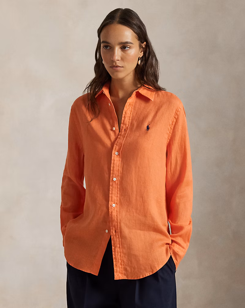 Classic Fit Linnen Overhemd Oranje